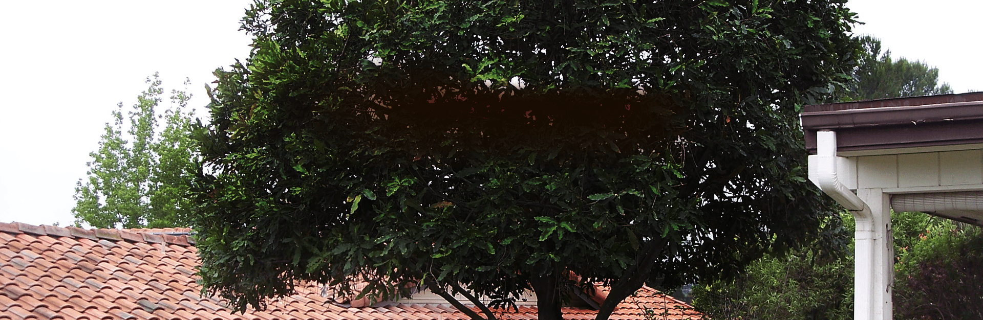 Large, untended trees invariably become overgrown and heavy, and require safety pruning over structures, and to reduce weight in the branches.